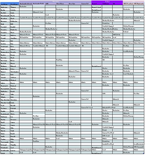 EVALUATION STAFF PARTICIPATION – COMPLETE LIST
