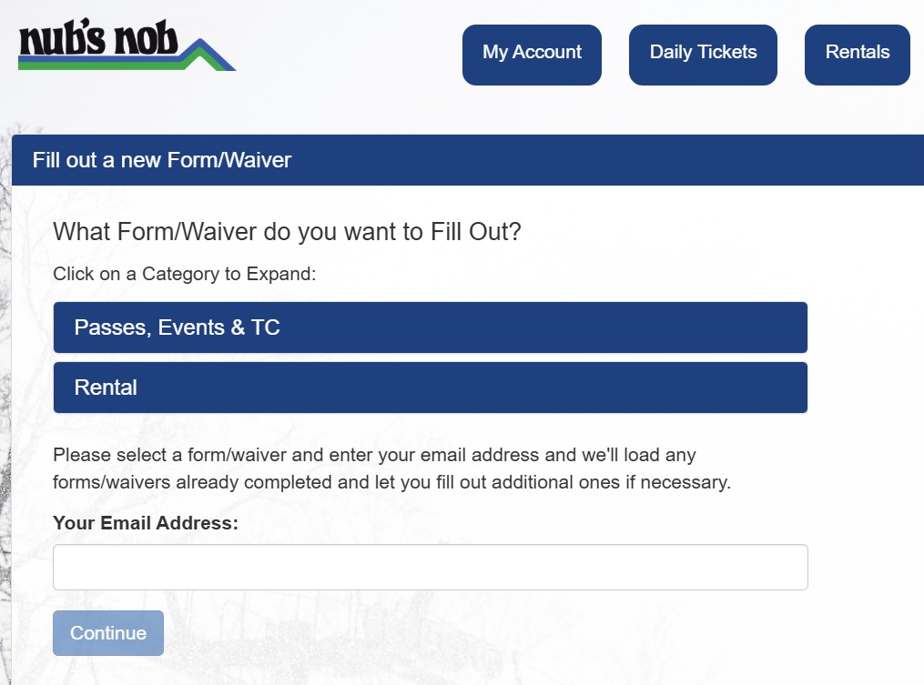Please use the link below to fill out your waiver for your lift tickets at Nubs Nob for Thursday and Friday. Everyone purchasing a lift ticket must fill out this waiver prior to arriving at the resort. Your registration and waiver submission will be matched before you will receive a lift ticket.